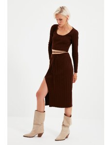 Trendyol Brown Tie Detailed Knitwear Bottom-Top Set
