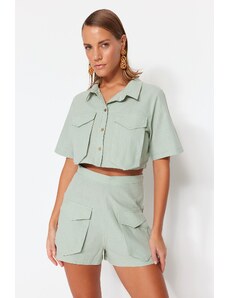 Trendyol Mint Woven 100% Cotton Shirt and Shorts Set With Pocket