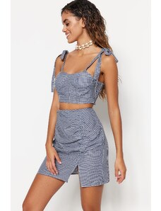Trendyol Gingham Woven Slit Blouse and Skirt Set