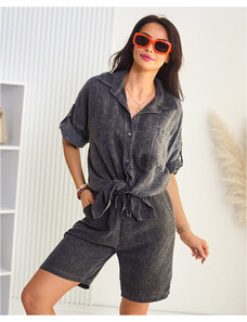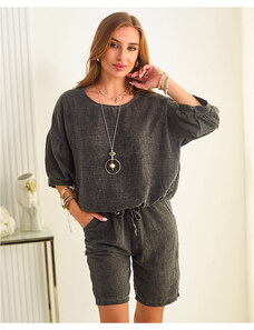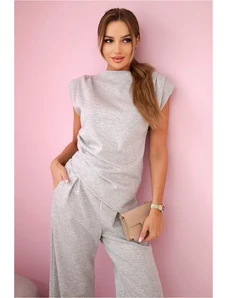Kesi Włoski Set asymmetrical blouse + pants grey