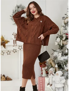 Resti Acrylic braided women's set with sweater and skirt Warm&Fuzzy