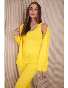 Dimensions of the set in one size measured flat: width of the top under the armpits - 45 cm, length of the top - 55 cm, width of the cardigan under the arms - 75 cm, sleeve length - 58 cm, length of the cardigan - 57 cm.