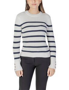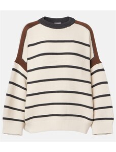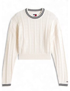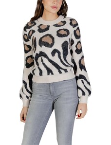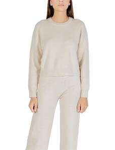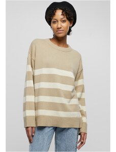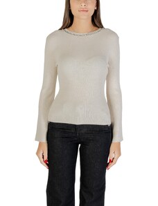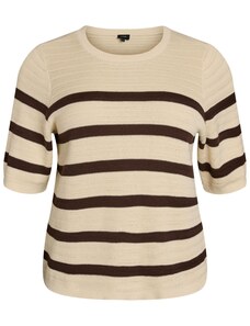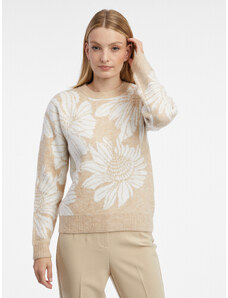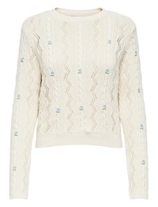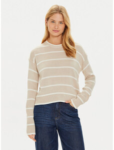 Beige openwork summer sweater with a round neckline.