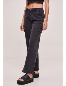 Urban Classics Women's High Waist Straight Denim Cargo Jeans - Black