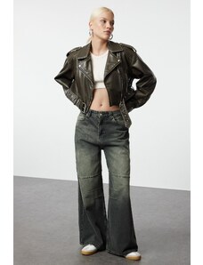 Trendyol Gray Faded Effect Vintage Stitch Detail High Waist Mega Baggy Jeans
