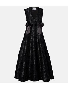 Ganni Bow-detail floral satin cloquà midi dress