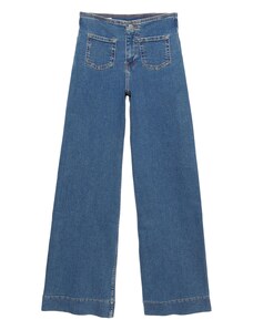 Dizajn: Prekriveni rub/šav, Zip Fly, Našiveni džepovi, Zatvaranje na gumbe; Vrsta zatvaranja: Zatvarač; Materijal: Traper; Uzorak: Jednobojno; Dodaci: Kontrastni šavovi, Efekt pranja, Stabilan prihvat; Pranje: Rinsed/dark washed; Dužina: Duga/maxi; Kroj: Wide Leg/ Široke nogavice; Struk: Srednje visoki struk. R-0.56. P-0.1727639551. RQ-0.61