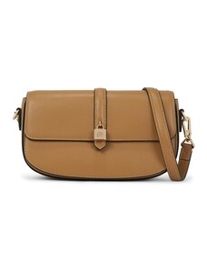 Prednji dio ima ukrasni preklop koji izgleda elegantno. Preklop je upotpunjen diskretnim okovima u tamnosrebrnoj nijansi koja se slaže s ostalim metalnim elementima torbice. Glavni džep torbice zatvara se patentnim zatvaračem, što osigurava sigurno pohranjivanje predmeta.